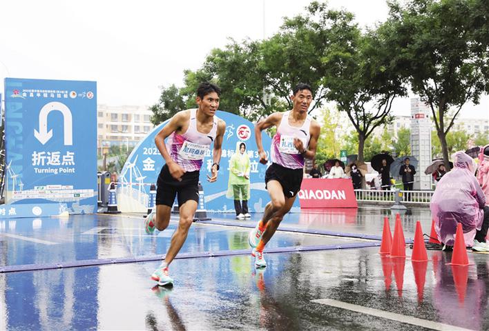 来自青海的选手梅增彪目光灼灼,步伐沉稳,雨水顺着他轮廓分明的脸颊滑落,却丝毫未影响他的速度,“雨中的赛道别有韵味,更能激发我的热情。”